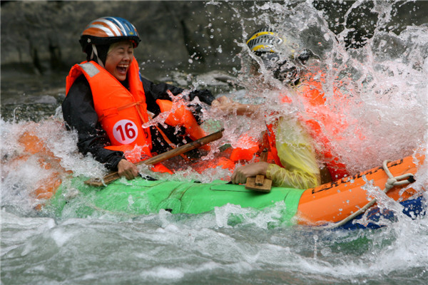 其漂流由上下两段组成,全长13.2公里的漂流河道分上下两段,上段6.4公里的漂流惊险刺激,相对落差100余米,急滩上飞舟,激情四射,碧水迂回,两岸绝壁林立,人在水中漂,忙里偷闲观赏岩棺群。