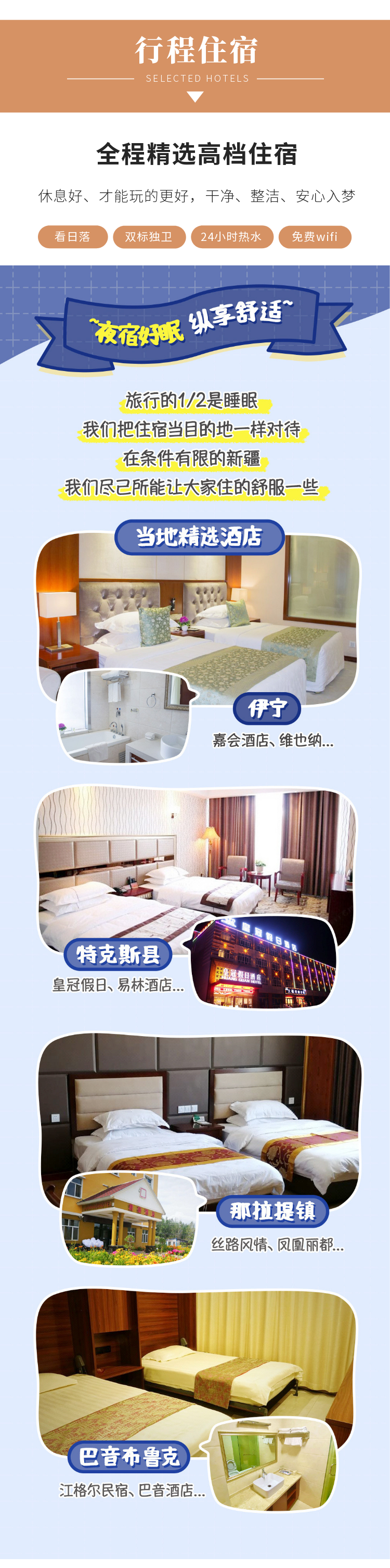 - 因新疆各景点间路途遥远孕妇、哺乳期儿童、75岁以上老人不宜报团(70-75岁之间客人参团需签订免责协议且有家人陪同);79周岁以上老人谢决参团!