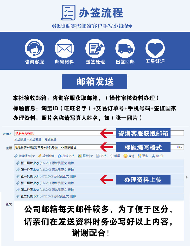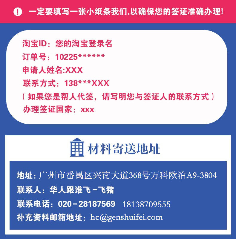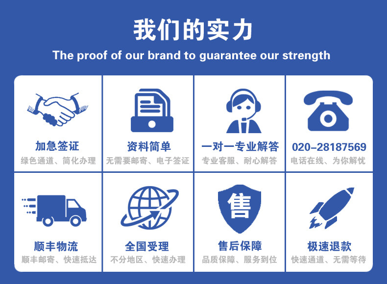 1、 我公司提供的是签证辅助服务。阁下提供的资料必須保证真实和有效,否则严重影响阁下签证出签率。签证发放是领馆对申请人的特许,而非申请人权利,签证的发放或拒绝是领馆的主权行为,不容争议。阁下是否可以成功申请到签证,取决于相关国家领馆签证官对阁下直接审核结果,而非我司原因导致。若最终发生阁下被拒签的状况,阁下应自然接受此结果,我司所收取的签证费和服务费用均恕不退还,同时阁下亦承诺放弃追究我司的任何责任。特别提示:交易发生即为阁下同意并确认此条款,否则请不要拍下宝贝。