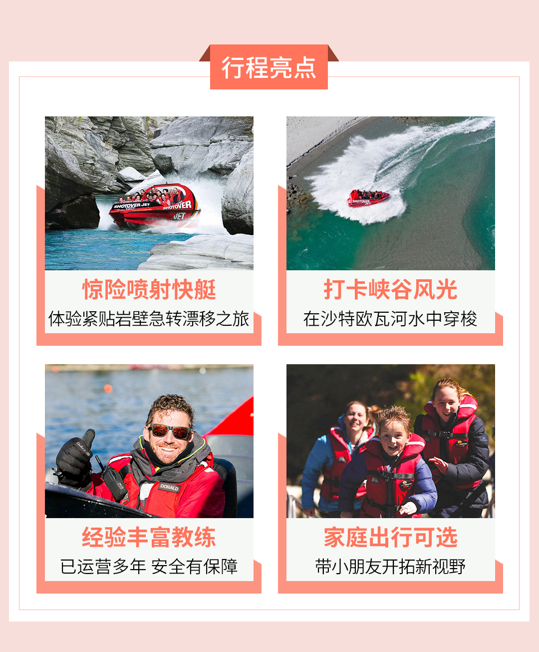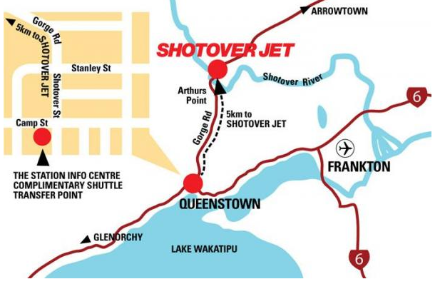 Shotover Jet班车每15分钟从皇后镇The Station信息中心(Corner Camp and Shotover Streets)出发,请提前45分钟到信息中心内check in后等待班车。