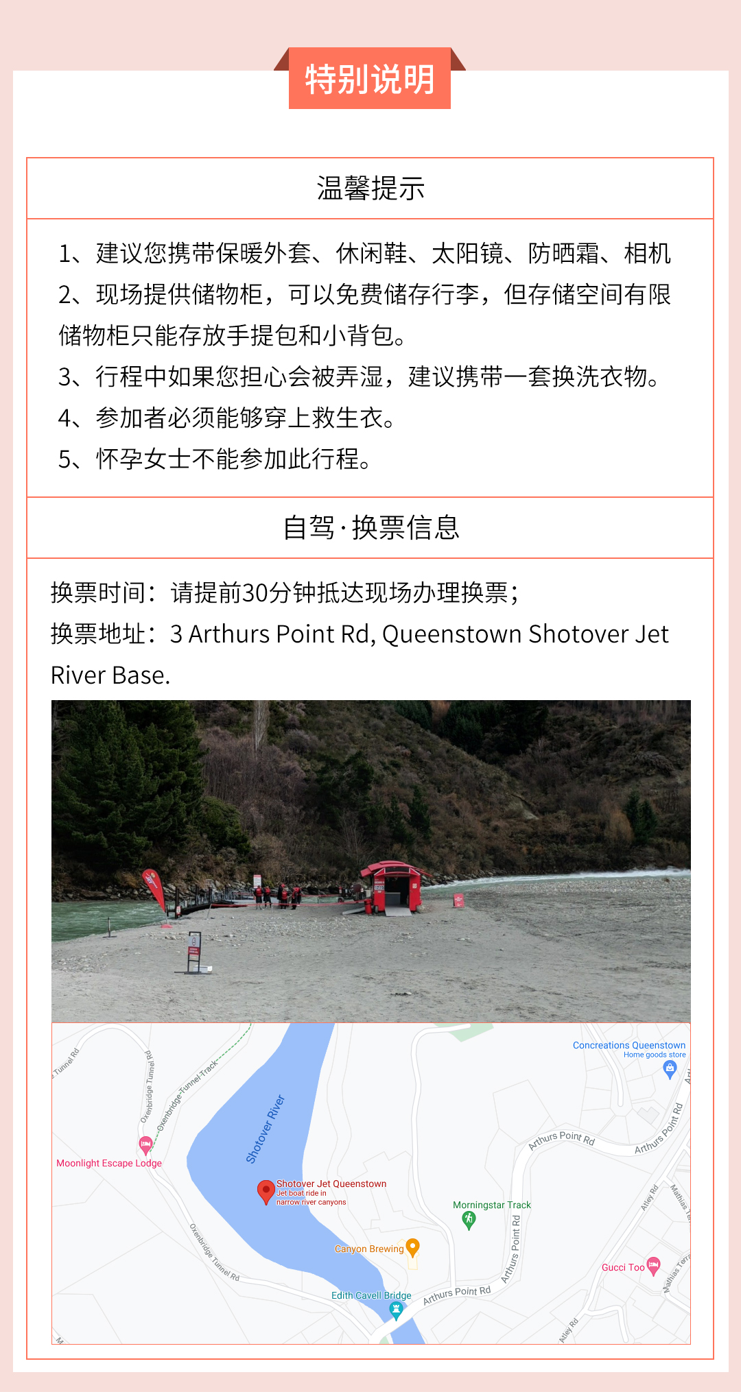 2. 接送说明:自驾或者乘坐皇后镇免费班车;