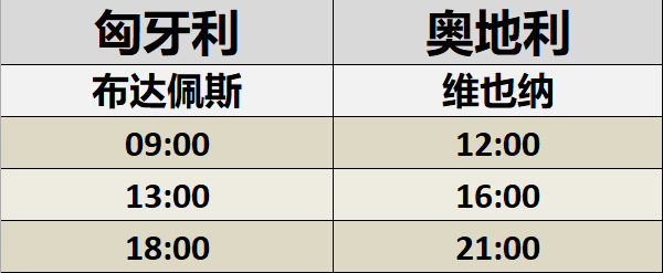 【布达佩斯-维也纳时刻表】如下: