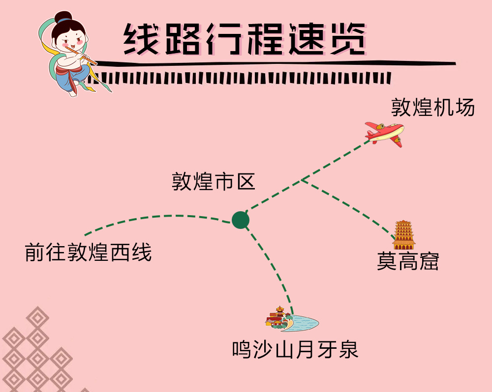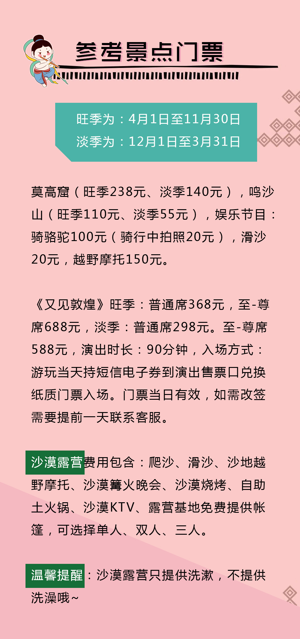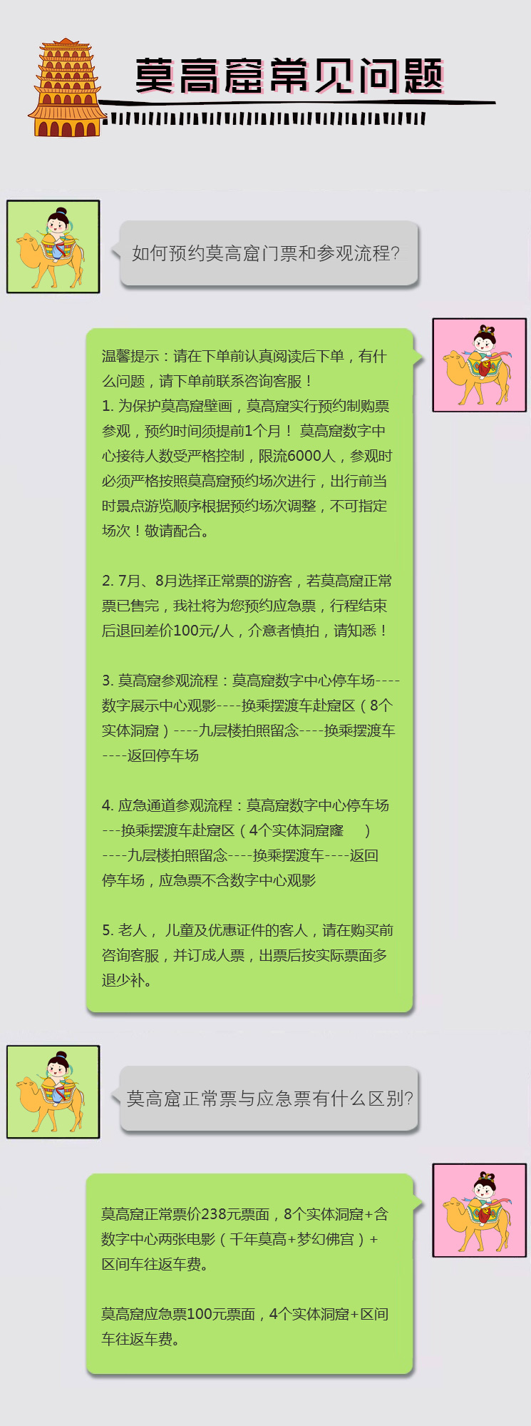 1. 参观时必须严格按照莫高窟预约场次进行,因此景点顺序会根据莫高窟预约时间进行调整,不可选定场次,敬请配合;