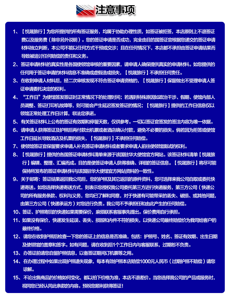 2. 若相关办理部门(包括并不限于使馆、政府部门、签证中心、保险公司等)有政策性费用调整,差额需由客人自行承担,敬请谅解。