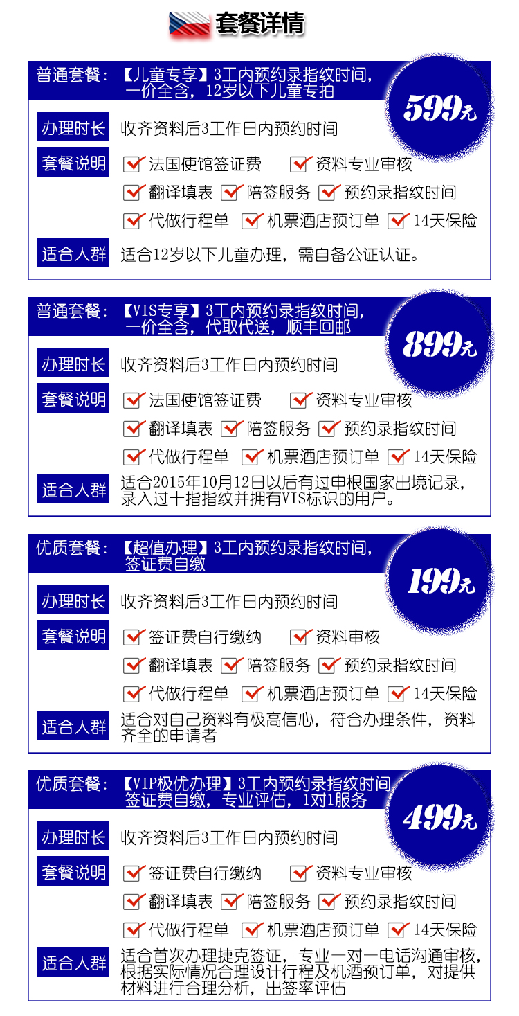 - 普通套餐 3工约录指纹,签证费自缴¥399起