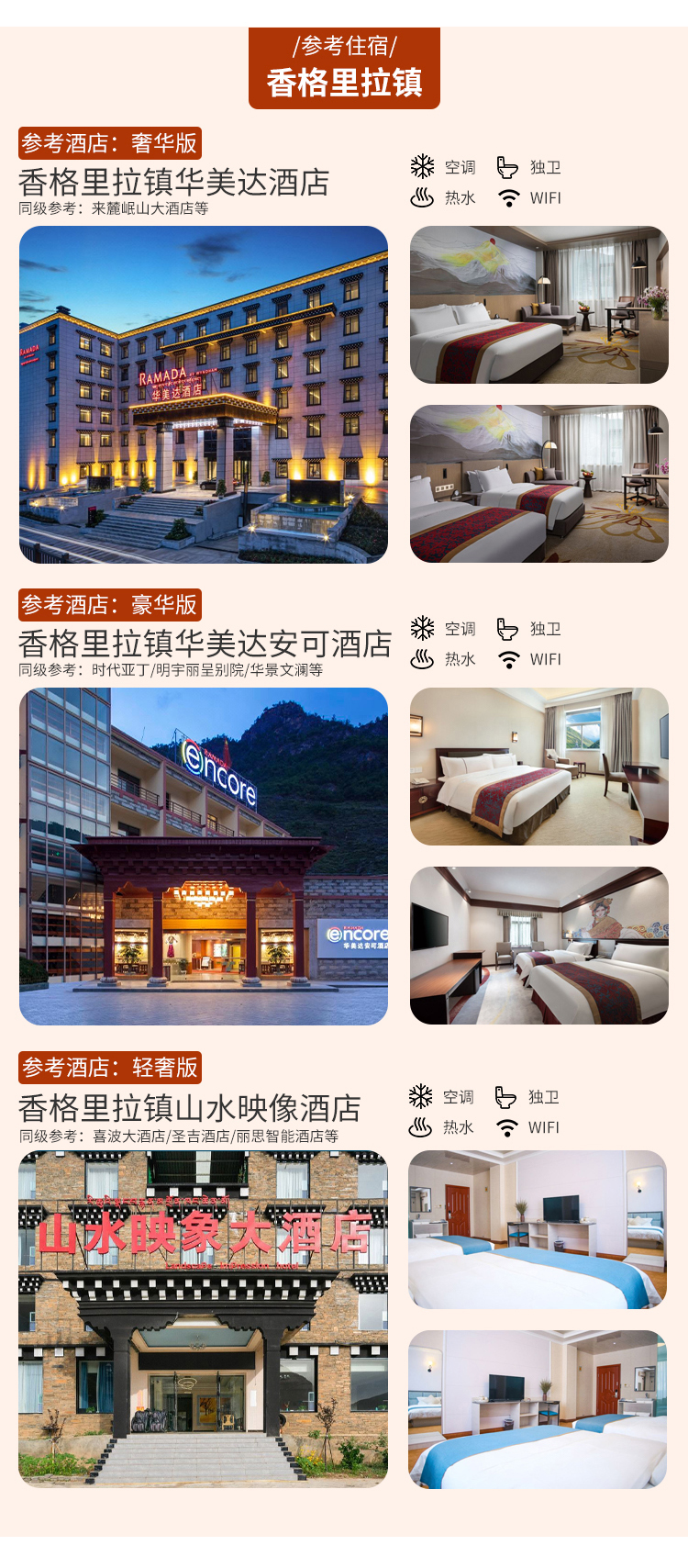 【香格里拉】 3钻:香格里拉镇山水印象/圣洁酒店/喜波大酒店等同级酒店