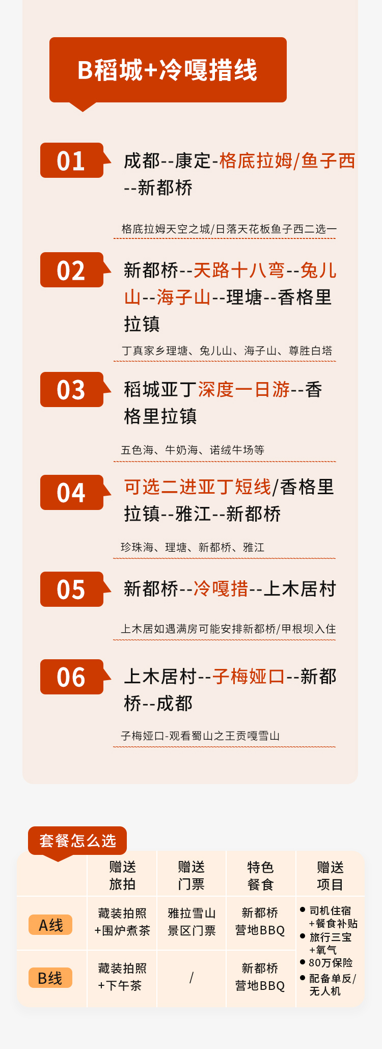 B线:稻城亚丁+新都桥+鱼子西/格底拉姆+理塘+冷嘎措+上木居+子梅垭口