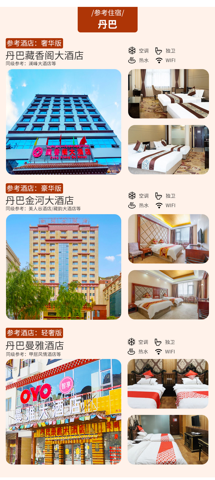 【丹巴】 3钻:丹巴金河大酒店/丹巴美人谷酒店/丹巴藏韵大酒店/兰庭大酒店等同级酒店;