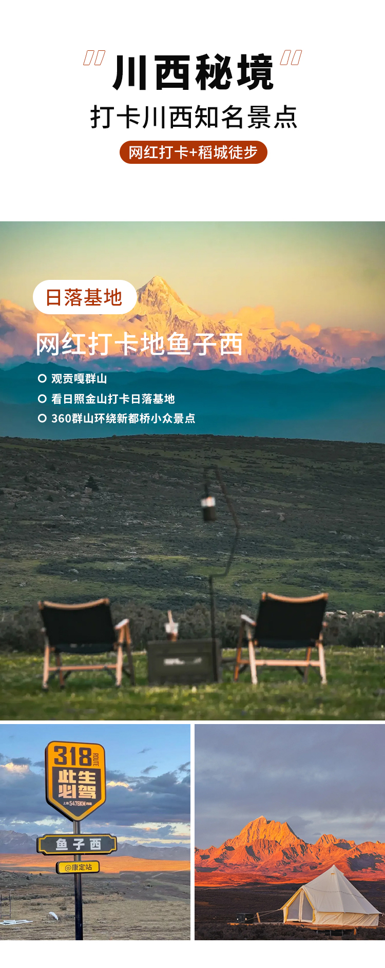 注:国庆客流量高峰期,因上木居住房有限,如遇当天满房可能会调整到新都桥或甲根坝入住,感谢您的理解与支持,祝您路途愉快!