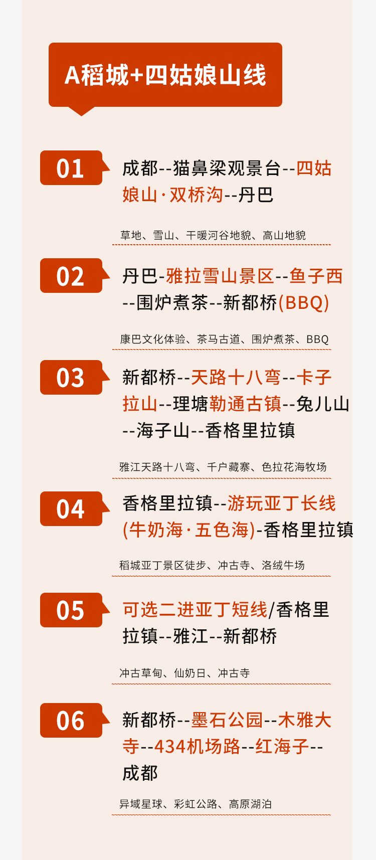 A线:稻城亚丁+新都桥+丹巴+理塘+四姑娘山小环线6日