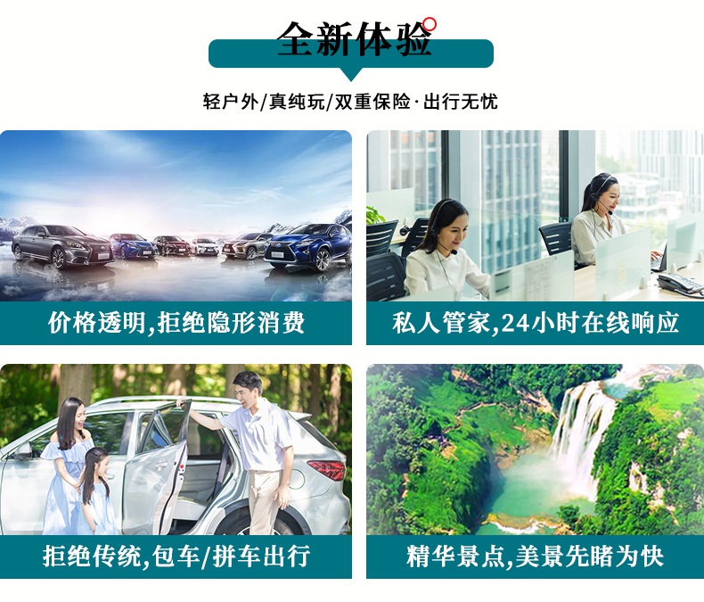 6、接送:行程当天安排接送,酒店,火车站,机场均可接送(一次性接送,不分批接送)