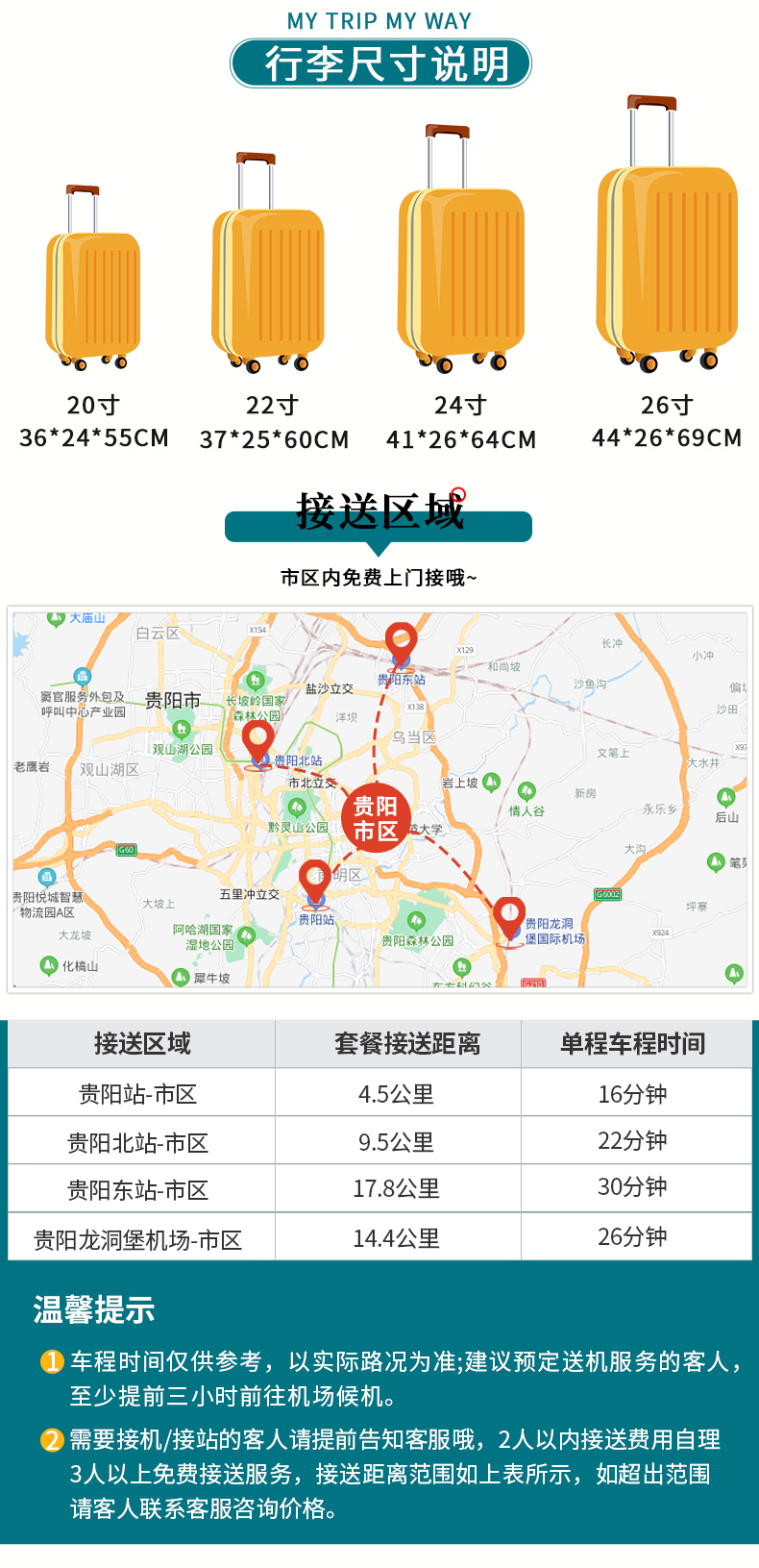 (2)由于往返大交通进出顺序不同导致的时间差异,在接送站、接送机时会出现相互等候的现象,敬请谅解!