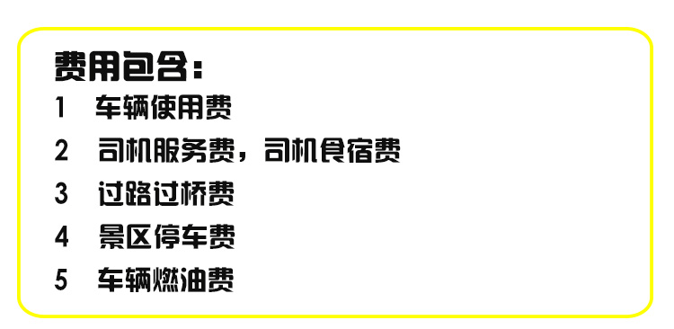 1. 超时及超公里费用;2. 不含行程所列景点门票;