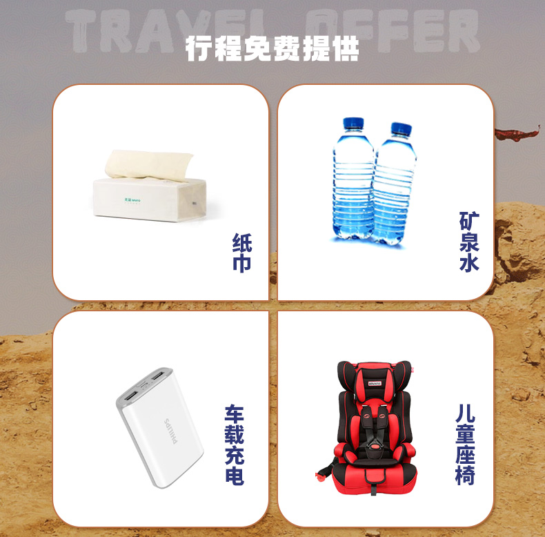 3. 车内矿泉水(每人一瓶)、纸巾。