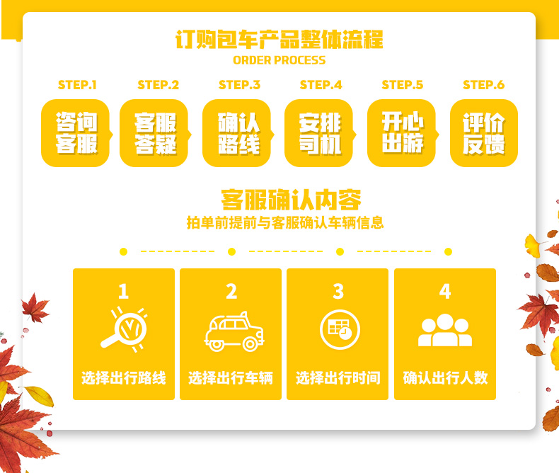 1.下单确认后,我社会安排司机在您出行前一天21:00之前与您联系,请您务必提供正确的联系方式,并保持手机畅通;