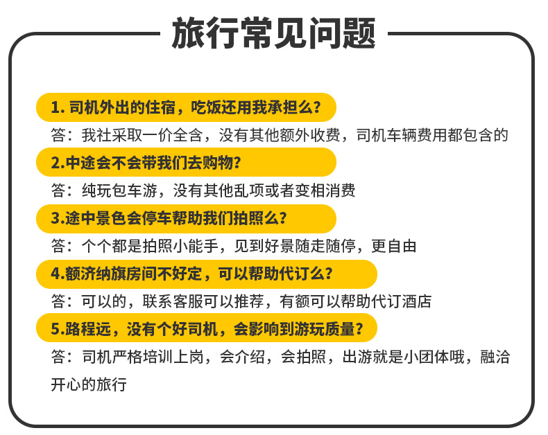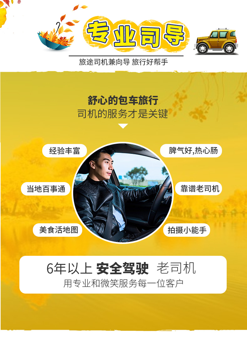 集合时间:具体出发时间由客人和司机约定,一般建议早上8点出发
