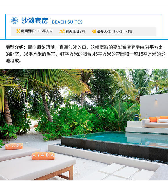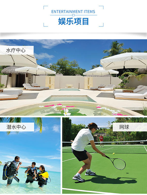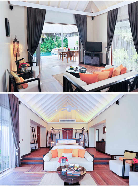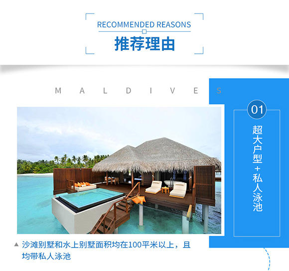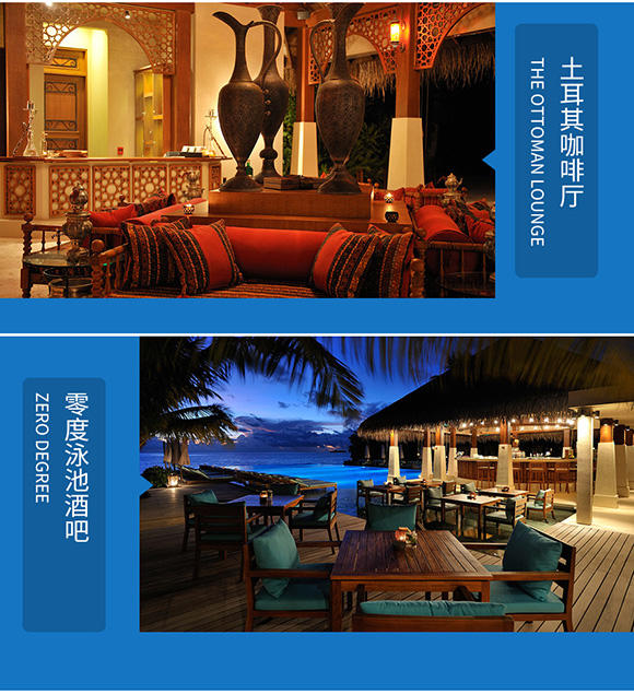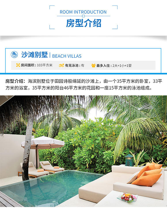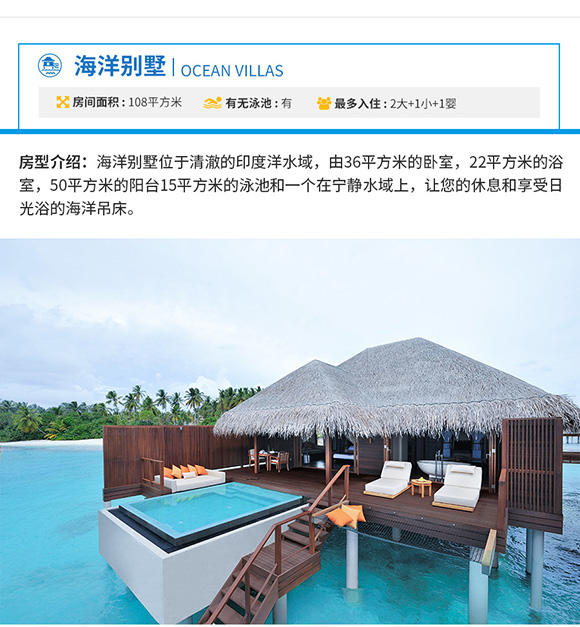 2. 岛屿酒店:2晚花园别墅Garden Villa+2晚泳池水上别墅Ocean Villa with private pool