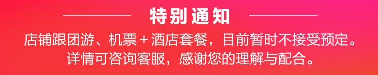 8.半日游:仅套餐标示含半日游,可选上午场或下午场,下单时请告知客服,如不告知默认安排下午场。