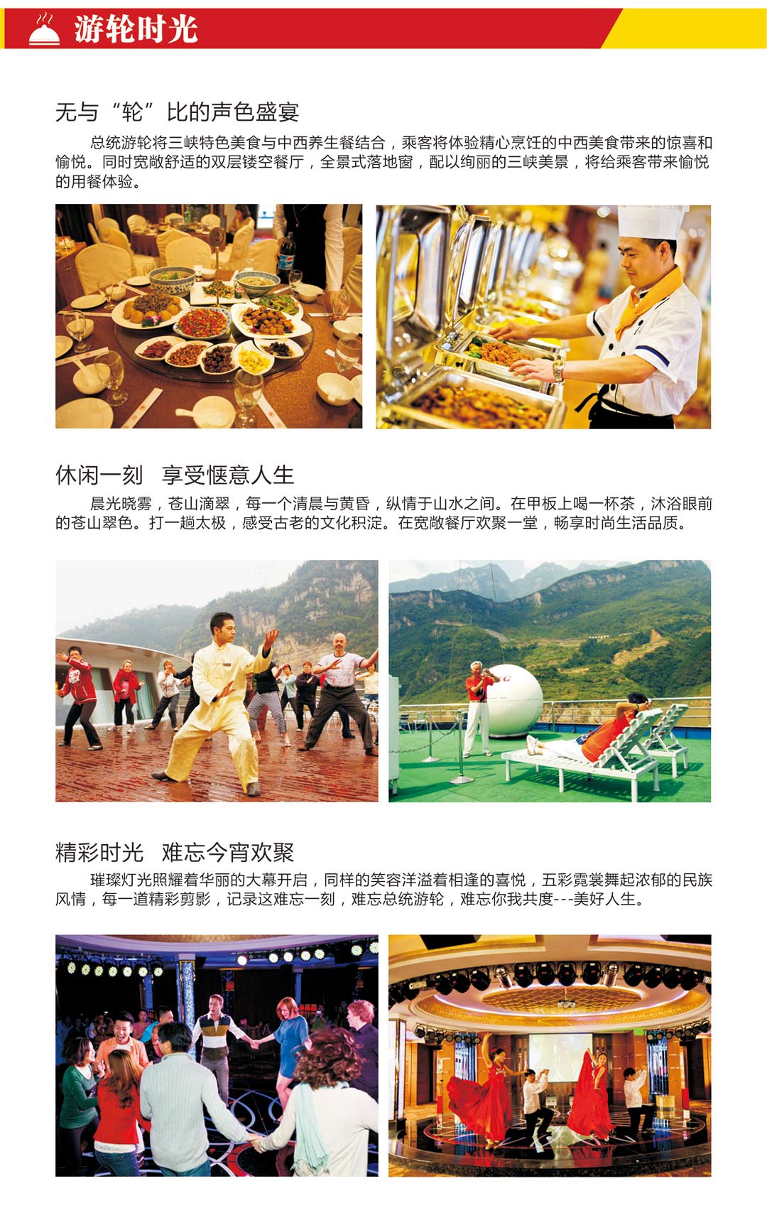 4、包含游轮歌舞晚会、健身、针灸、中国画、调酒等文化讲座或活动(具体以游轮广播通知为准)。