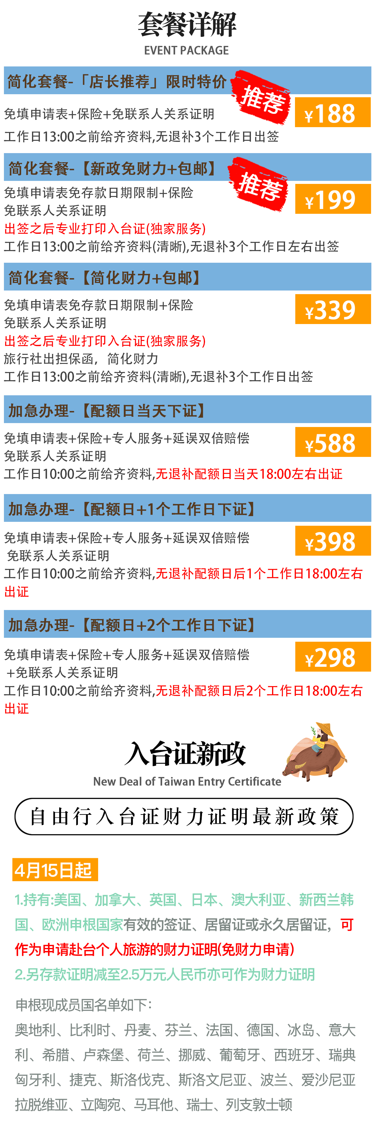 - 普通套餐 入台证+保险¥159起