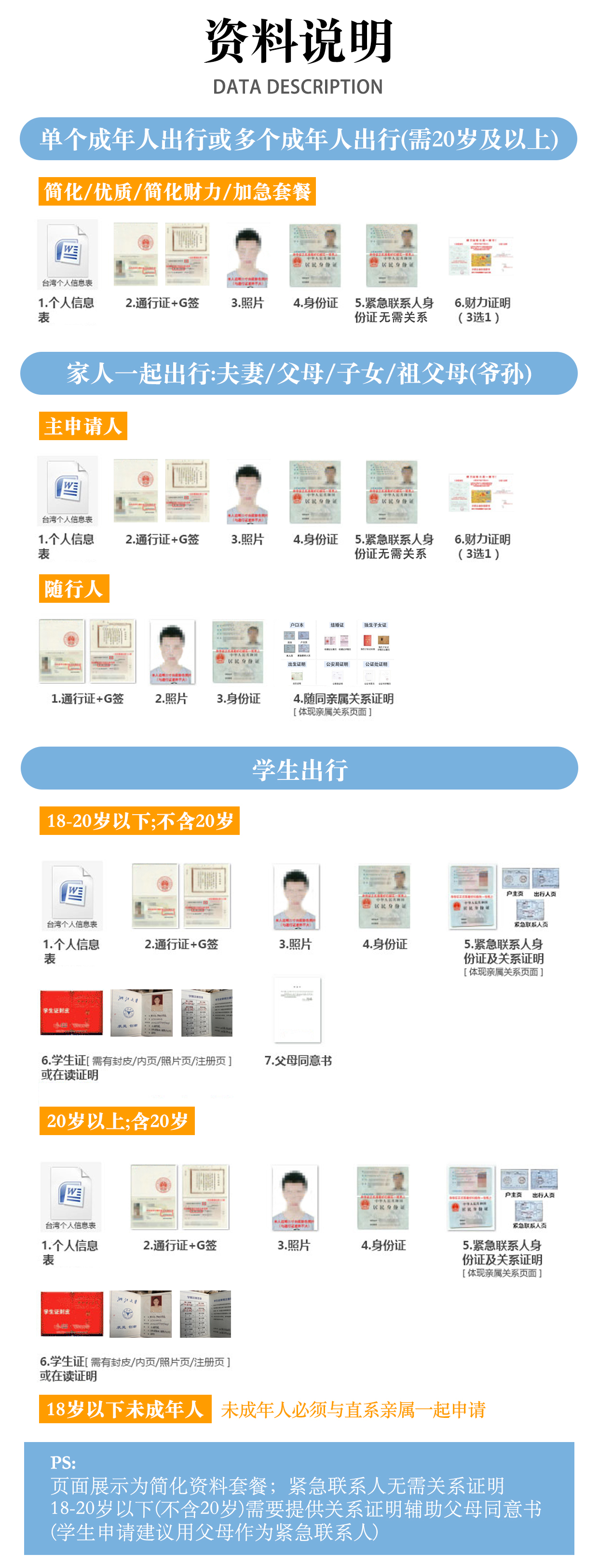 5. 页面显示资料均为简化套餐,标准办理的资料为移民署要求扫描件(请以邮件资料包为准)【多人申请不支持多订单】如有任何疑问,可咨询客服。