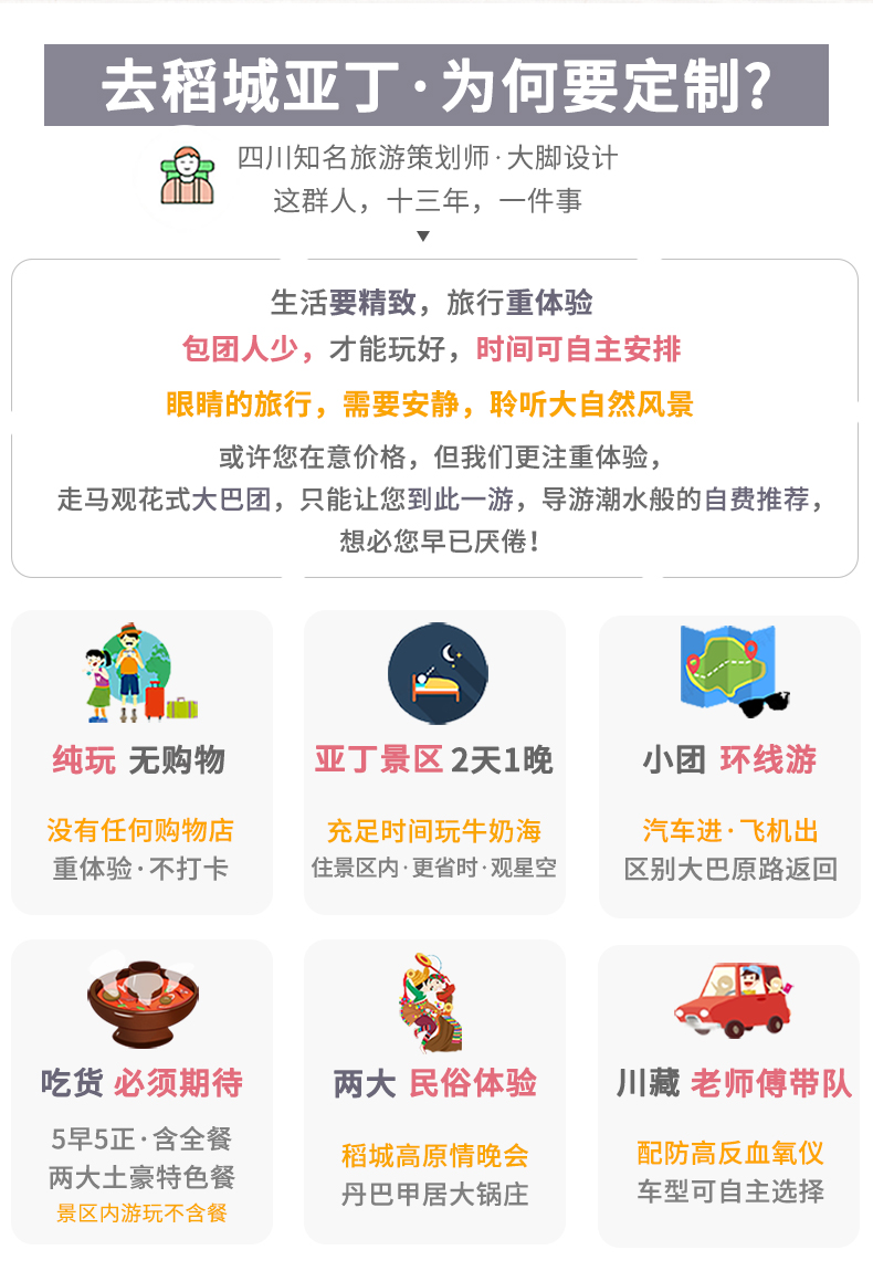 6. 服务包含:以上行程为经典行程,仅供参考,可根据自身需求个性化定制;