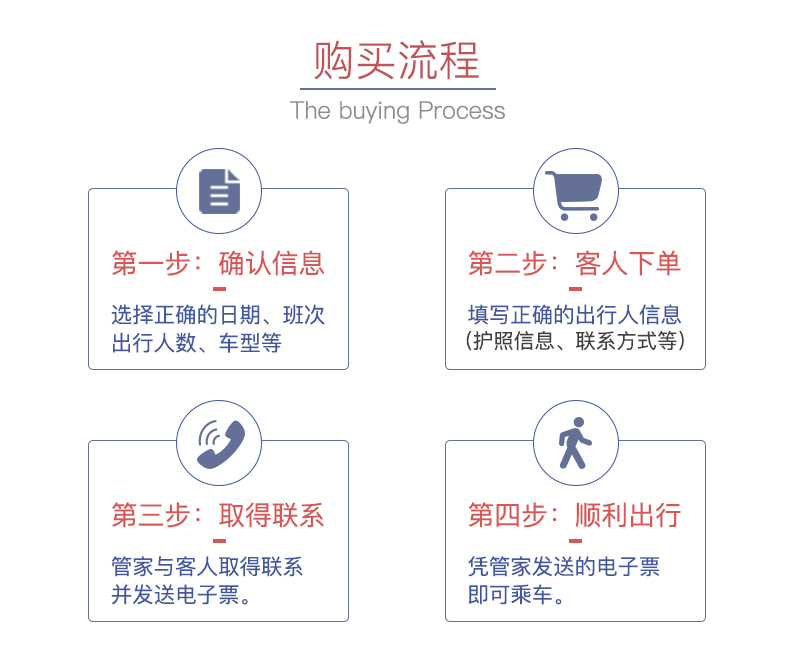 1 本产品为代预定类产品,因此下单付款后需要二次确认。订单确认后我们将于行程开始前3-5天发出邮件通知(3天内急单加急处理),请保存邮件及附件,详细阅读,并持附件车票自行乘车。