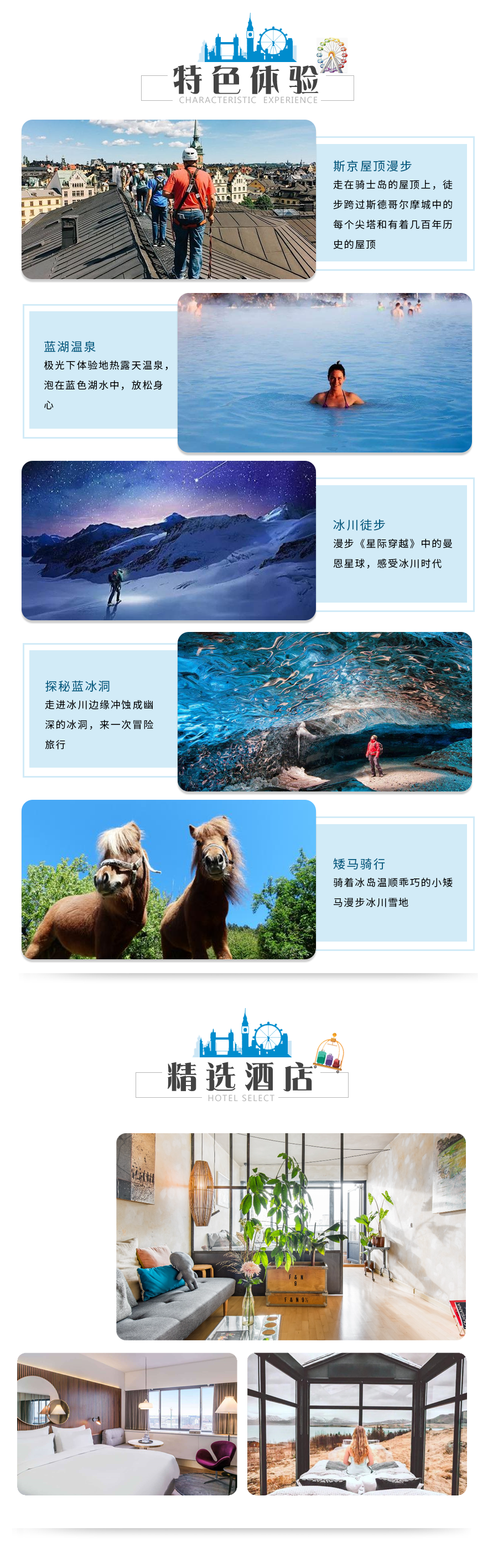 内陆段航班:D5:斯德哥尔摩飞雷克雅未克;(经济舱含税含行李,机场建设税、燃油税)2. 酒店:全程入住11晚市区精选四星酒店(可咨询客服调整级别)