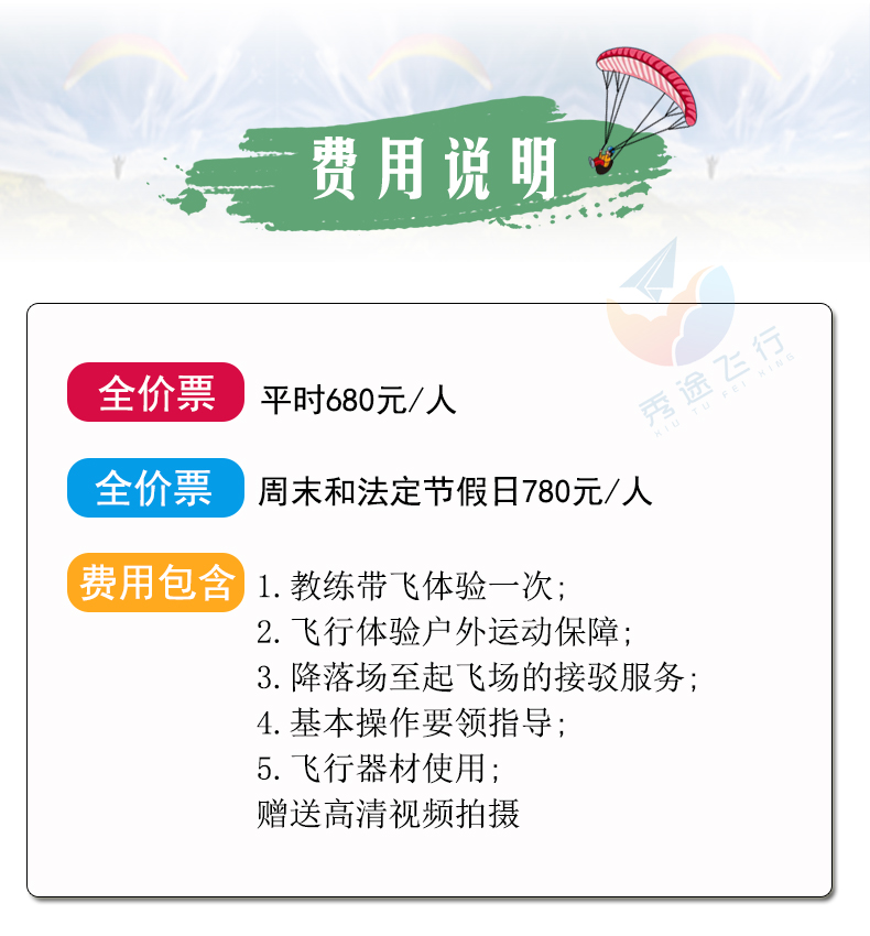 - 花山滑翔伞费用包含