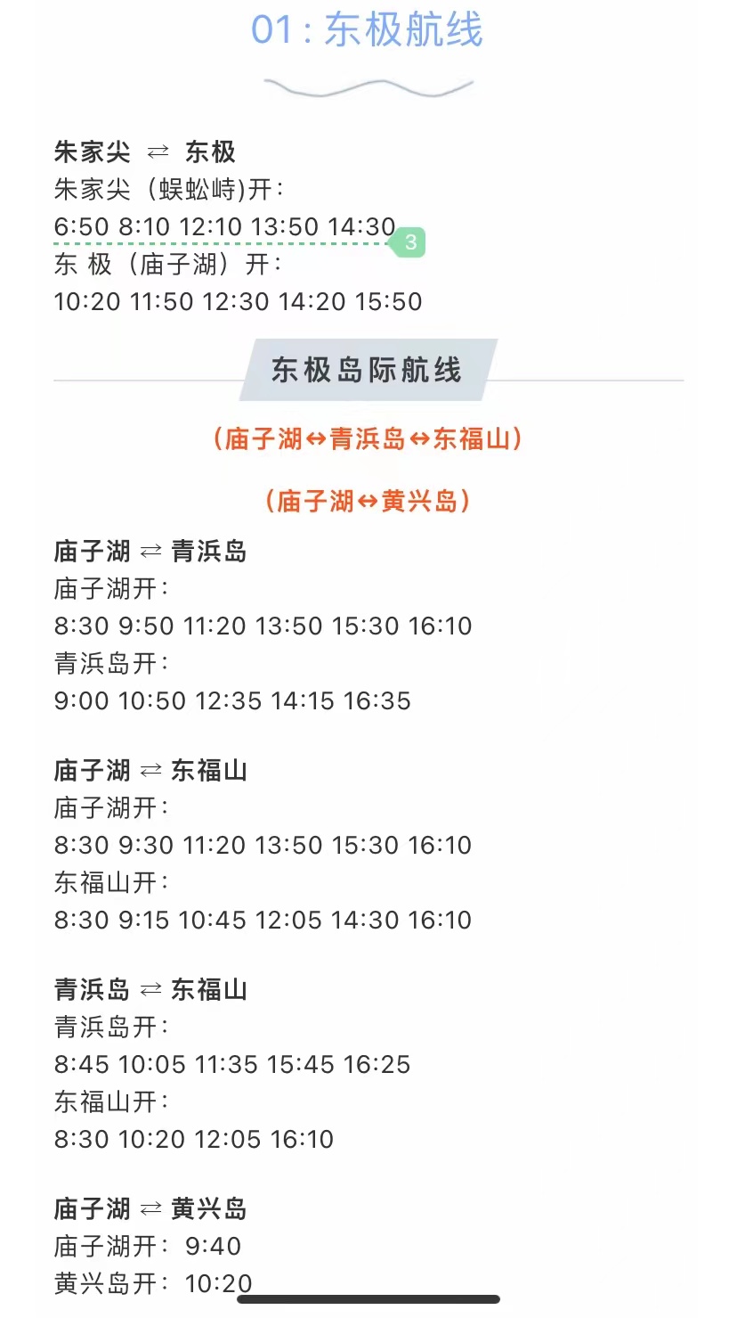4、因东极海况特殊,航班时间前后大约有20分钟左右变动。