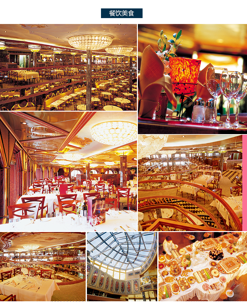 2、歌诗达“大西洋号”每日餐厅用餐(1日5餐:早餐、午餐、下午茶、晚餐、宵夜);