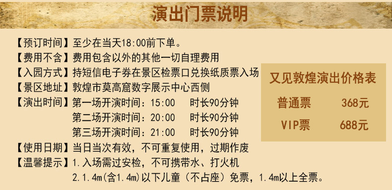 | 莫高窟(应急票)+又见敦煌剧场(普通票) 成人票 联票 |