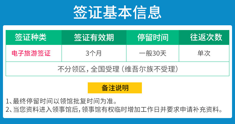 5、签证办理时间以“工作日”为单位,实际办理时间以领馆处理时间为准,我司不保证具体时间。由于每个申请情况不一样,在领馆的审理所需时间也有不同。此外还可能会遇到突发情况如政策干预、假期调整,领馆内部人员调整,领馆签证办理过多等,有可能出现工作日延误而导致申请人后续旅行行程安排所造成的经济损失,上述情况并非本司造成,也并非本司能预见和控制,本司不承担任何责任。