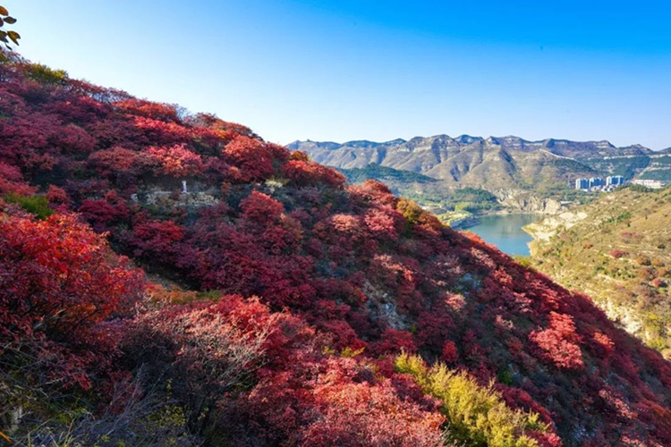 天赐山景区是圣峪口村近两年来集中全力打造的集水田园景观于一体的旅游新景点,从西往东,按照山势走向,分别建设了红山晚秋、翠崖飞瀑、山门夕照、龙背漫步、天赐仙境等风景胜地,站在山上,微风拂面、山谷秀丽、奇峰怪石、山洞幽深、植被丰茂,自然景观蔚为大观。”