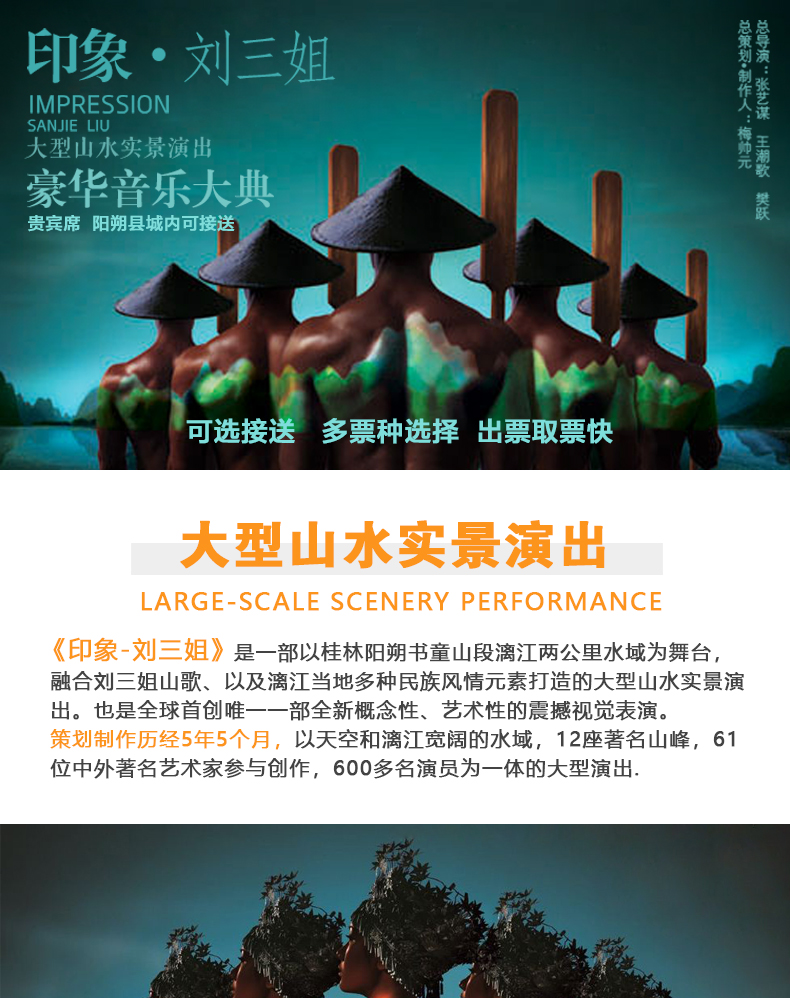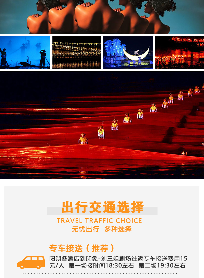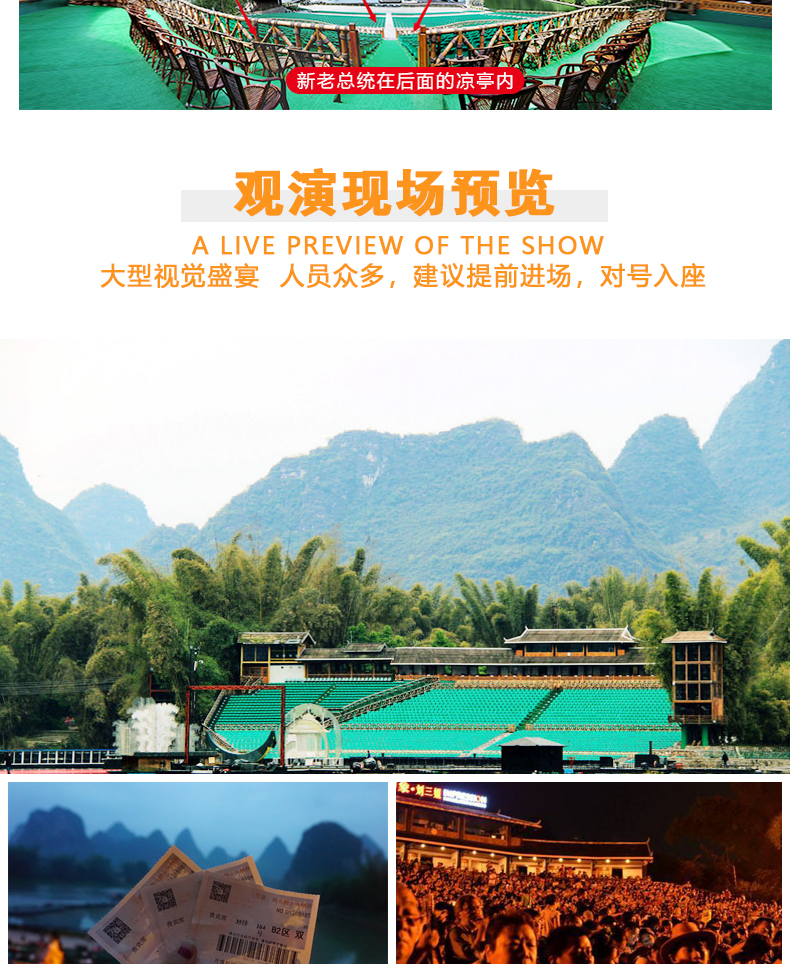 如遇到印象刘三姐停演我们会第一时间通知您,可以协助改为千古情演出,或改期或退款。
