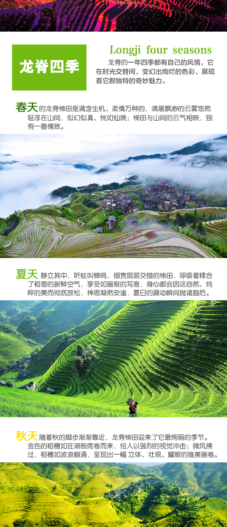 1.龙脊景区门票规定:1.2米以下儿童免门票,70岁以上老人凭身份证免门票