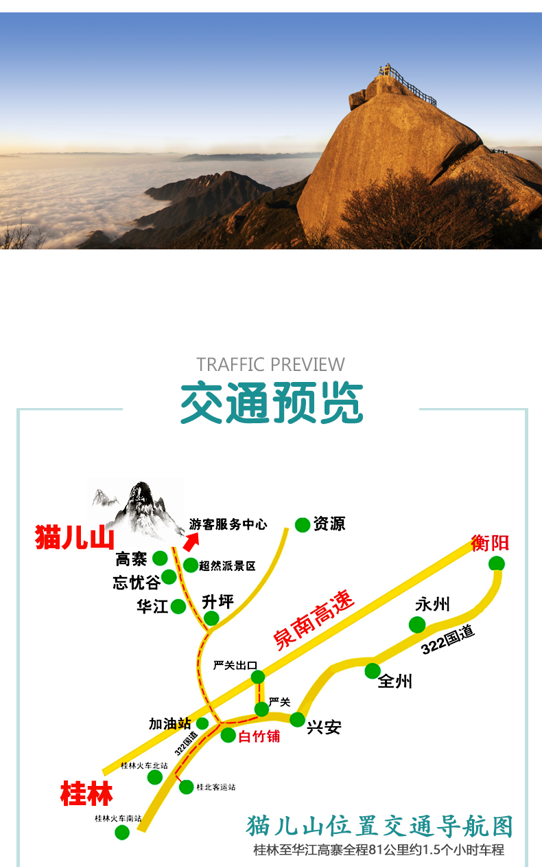 4、由于猫儿山是国家自然保护区,自2018年起,外国游客谢绝上山游览。