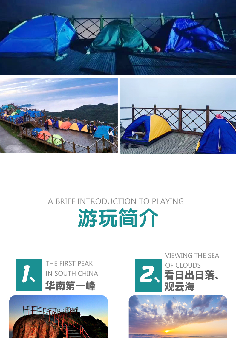 2、双人帐篷:可睡2人,含2人门票和上下猫儿山的专线车,赠送1张防潮垫、1床被子、1个露营地帐篷位