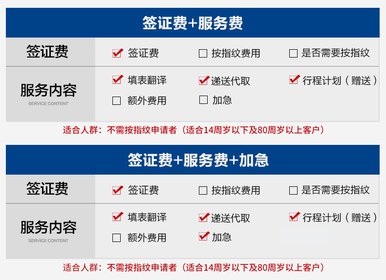 14 取消政策:如在收到您邮寄资料后,未产生签证费,但我司已为您提供审核资料的服务,您申请签证退款,我司将收取100元/单的服务费;如已递送产生签证费,费用不退;