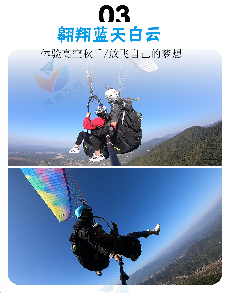 1、教练带飞体验滑翔伞体验票一次