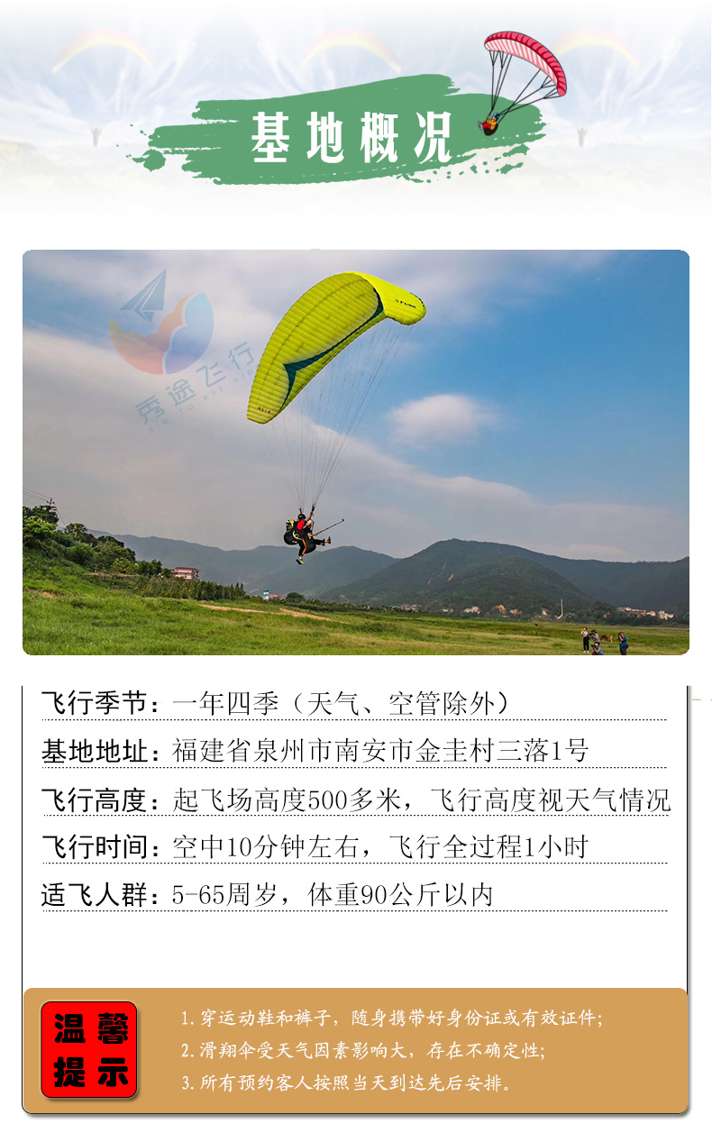 - 泉州南安九都滑翔伞费用包含