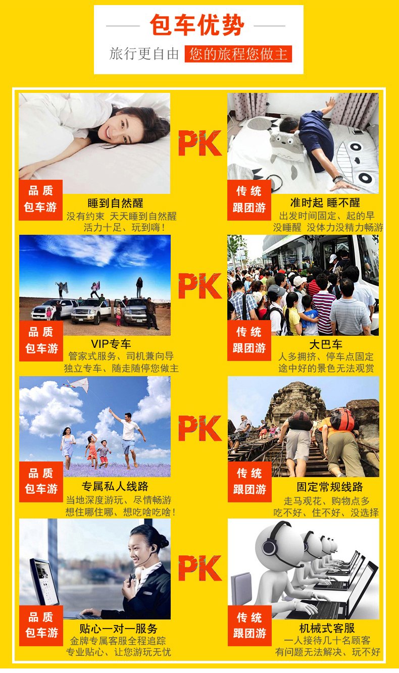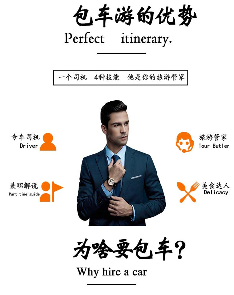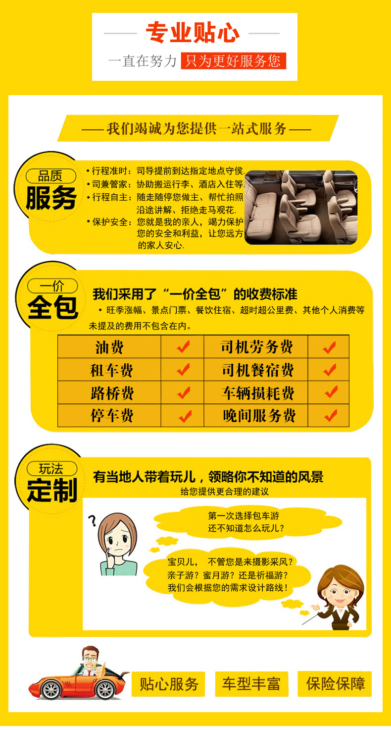 2. 本行程属于包车游,景点参观根据客人整体游玩时间做调整,完全自由休闲;
