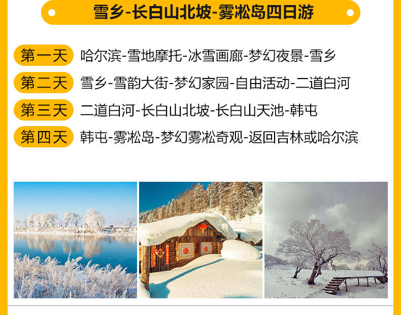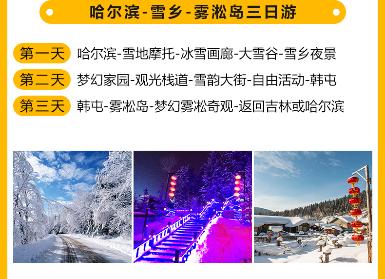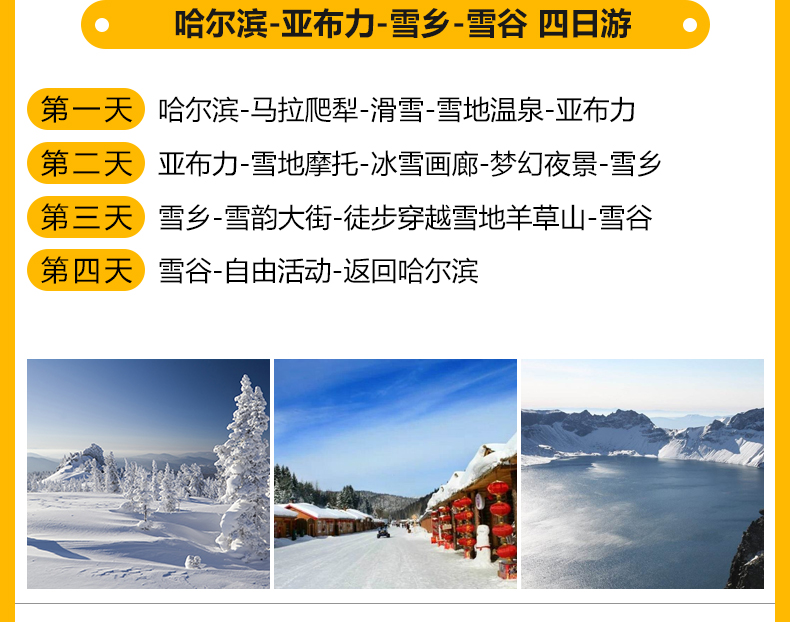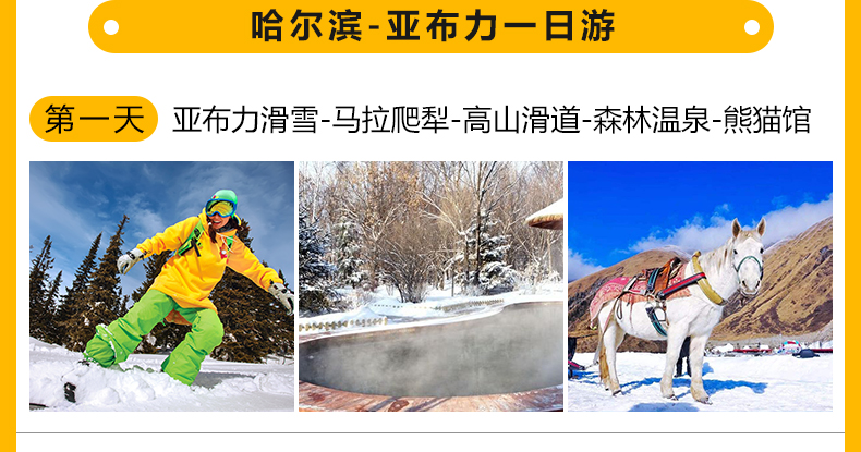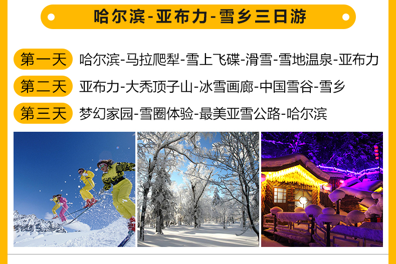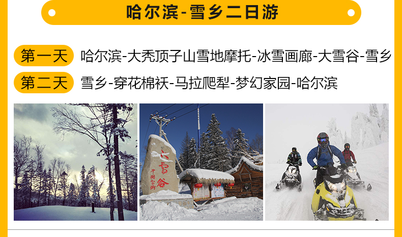 哈尔滨雪乡亚布力5日游(含全套娱乐活动,含5特色餐,大巴团)