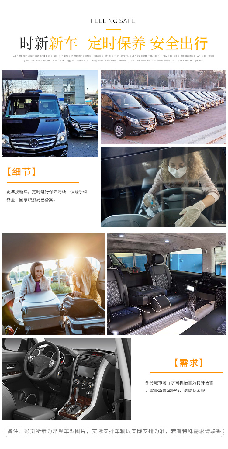 1.全程为按照人数选用5-7-9-12-15-27座车,保证车座数目大于游客数目,成人行李默认不超过1人2个大型行李。