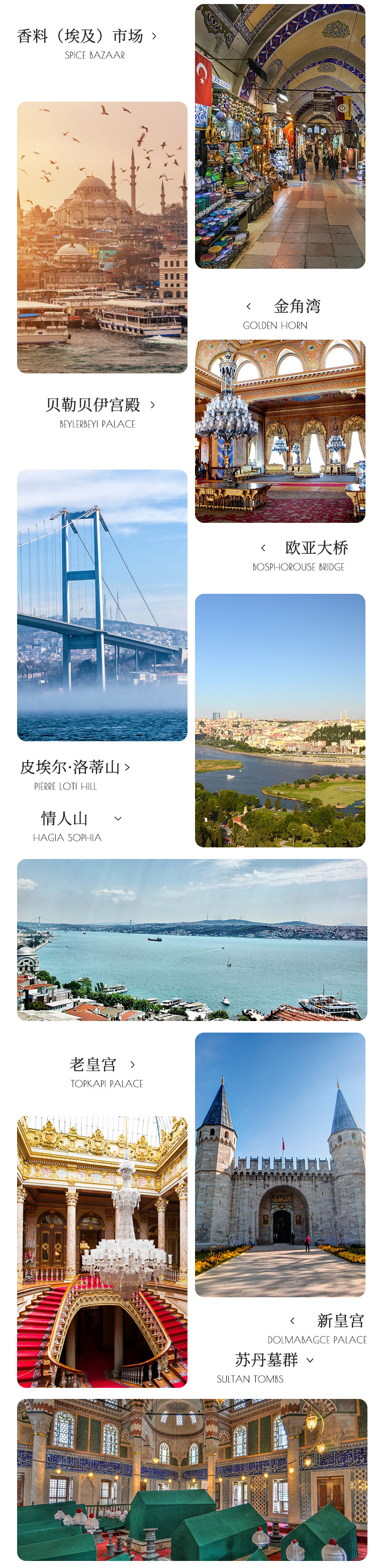 3.行程为早上伊斯坦布尔市区某家酒店接人开始(不含机场接人),最后一天抵达伊斯坦布尔机场之后结束服务(考虑到在机场直接回国客户,本报价不含最后一天从机场送回酒店的费用),或最后一天在市区游玩结束送回酒店的标准结束服务(不含机场送机服务)