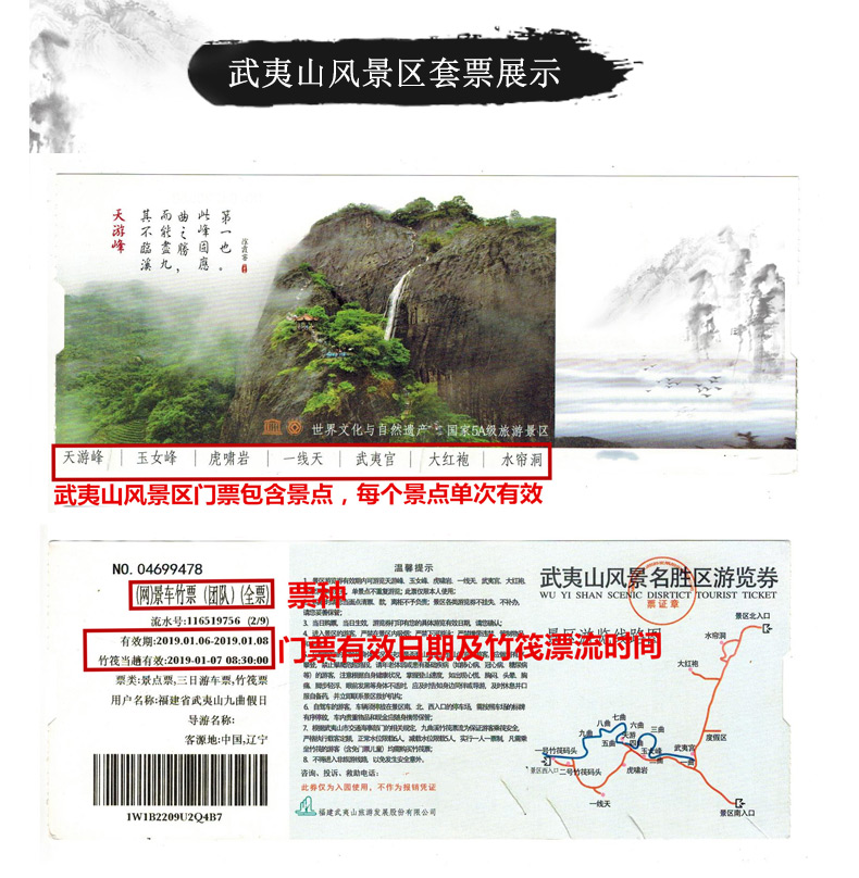 2、武夷山景区为实名制,请每个人携带身份证;凭刷本人身份证入园。境外客人需提供护照号,凭护照号及取票密码取纸质门票检票入园。