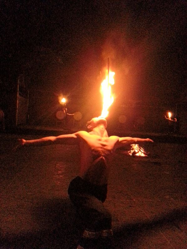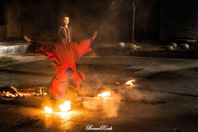 桃花岛篝火晚会又名风雨苗疆篝火晚会,是凤凰古城唯‘一场在岛上举行的晚会。当您蹋进神秘巫岛,这趟神奇的旅程就开始了。在这里,您不但可以亲身-体会到巫师背你下火海,还可以体验一次当苗族的新郎或者新娘亲眼看到他们表演上刀山、下油锅。这场篝火晚会还能为您解读湘西最神秘的民族的独门巫术,绝技湘西三怪”赶尸、放盅、下咒之谜。让你亲身感受到真真切切原汁原味的苗族风情。