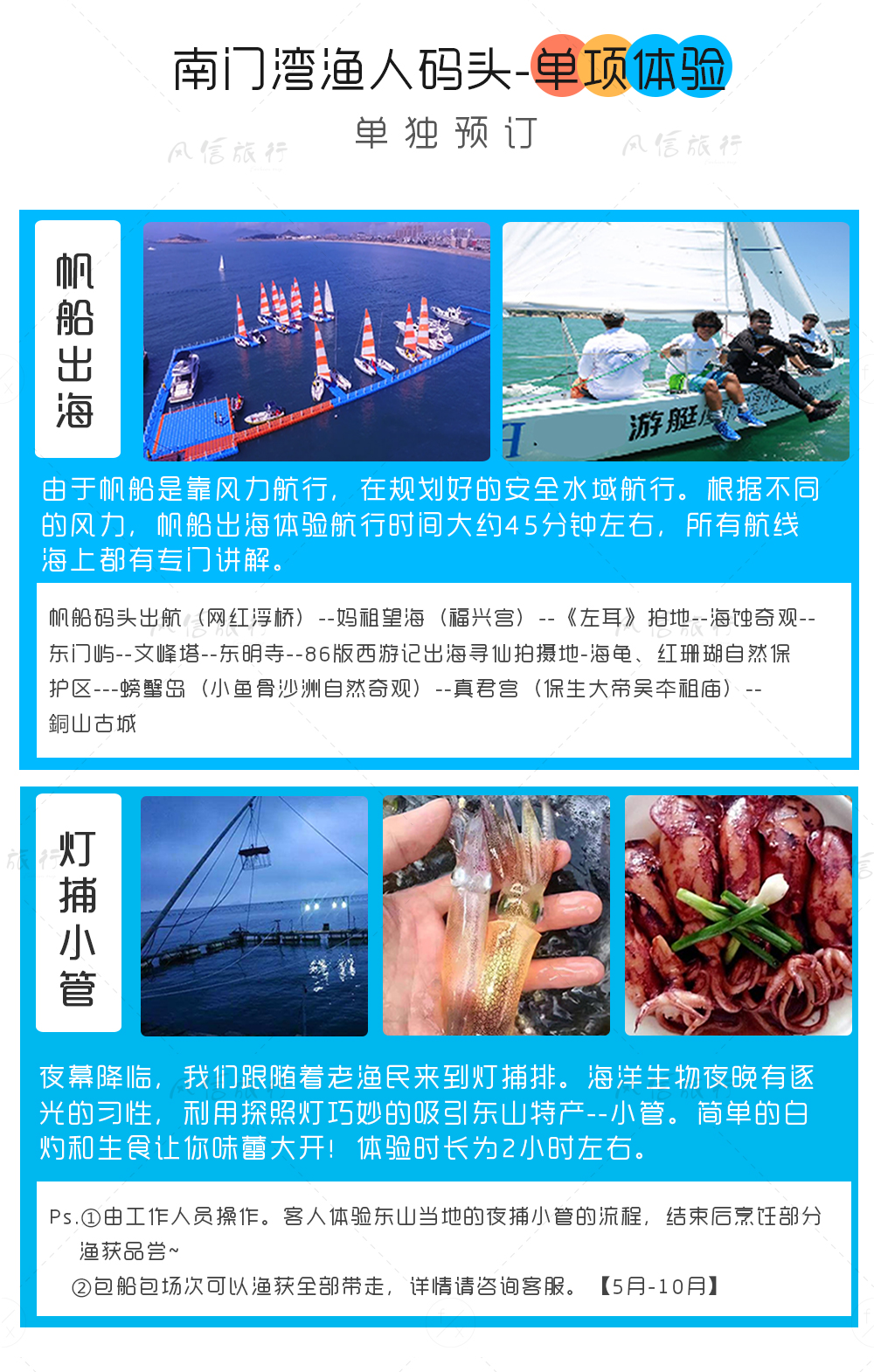 2. 由于海上存在一定危险性,不接待70岁以上老人及孕妇!