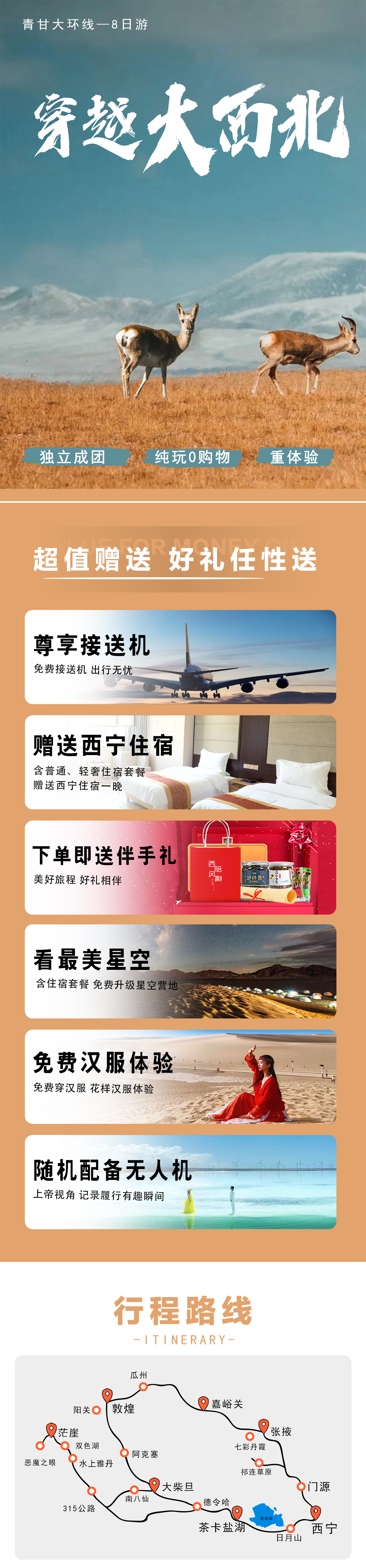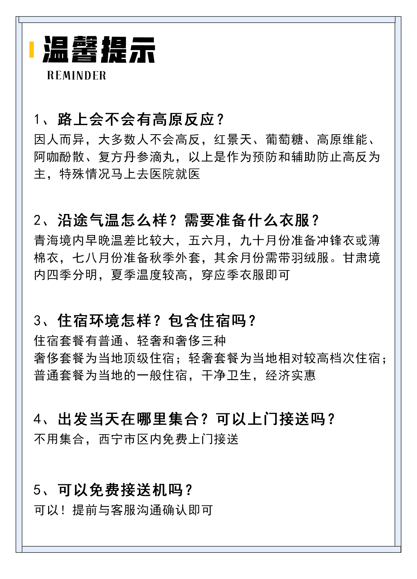 2关于送站;行程结束当天可免费送至西宁市内酒店、火车站、市内民航大巴乘车点。