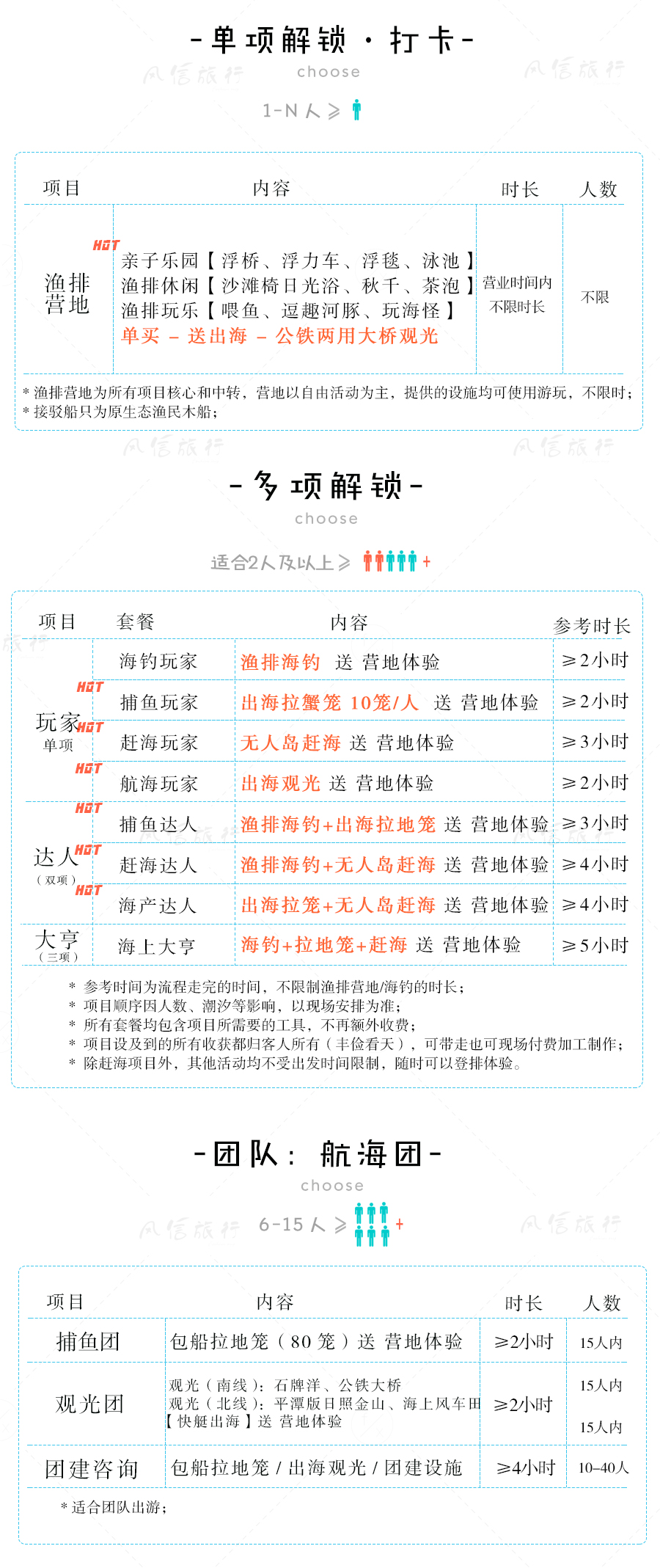 项目涉及出海活动,本着安全第一的原则,工作人员会根据当地海浪/水温/水质进行二次评估,如当天水域条件不符合出海,随时会有取消的风险,届时会第一时间进行通知以便客人调整行程,同时为客人处理全额退款,已产生的保险、食材、船只等费用无需客人承担。*因天气等不可抗拒因素造成行程改期、退订等情况、不做另外赔偿。